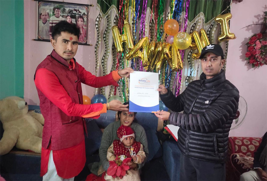 छोराको अन्नप्रासनमा थापाले दिए रिलायबल नेपाल लाइफको २० लाखको बीमा पोलिसी उपहार