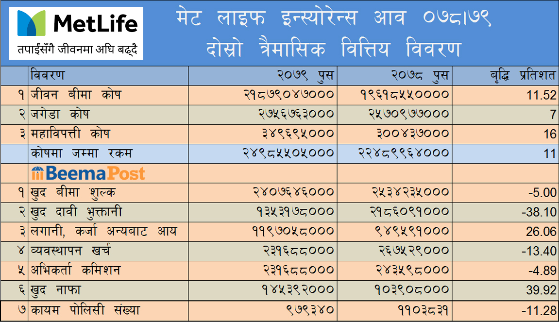 मेट लाइफको खुद नाफा ३९ प्रतिशतले बृद्धि, २४ अर्बको कोष बनाउँदै अघि बढ्यो कम्पनी