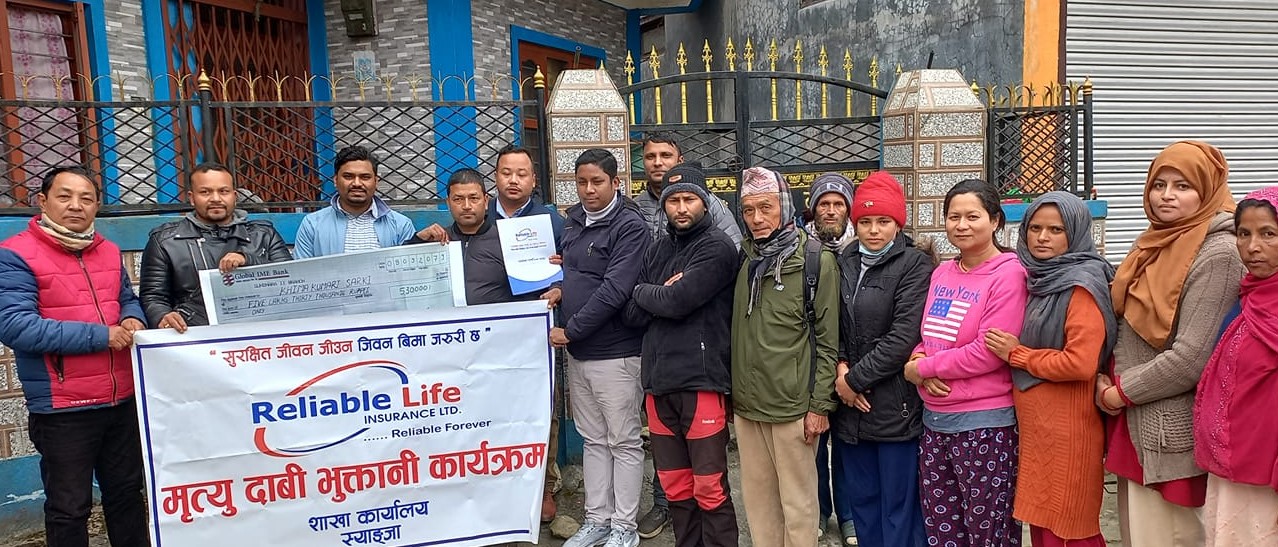 रिलायबल नेपाल लाइफ द्धारा मृतकको घरमै पुगेर२० लाख रुपैयाँ बीमा दाबी भुक्तानी