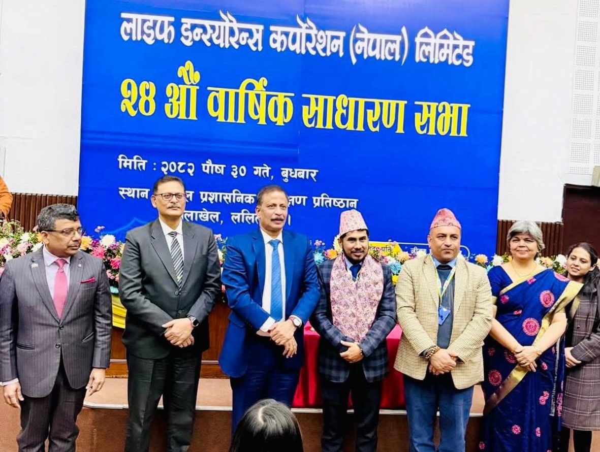 काठमाडौं । लाइफ इन्स्योरेन्स कर्पाेरेशन (नेपाल) लिमिटेड (एलआईसी) को चौबीसौं वार्षिक साधारणसभा सम्पन्न भएको छ । बुधबार ललितपुरको जावलाखेलस्थित नेपाल प्रशासनिक प्रशिक्षण प्रतिष्ठानमा सो सभा सम्पन्न भएको हो । सभाले हाल कायम चुक्ता पूँजीको २१.०५२६ प्रतिशत नगद लाभांश (कर...