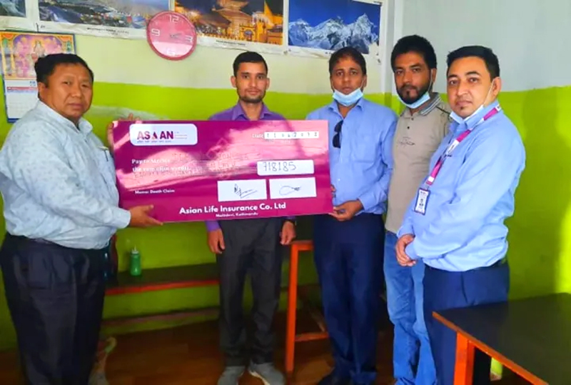 एशियन लाइफद्धारा ८ लाख मृत्यु दाबी भुक्तानी