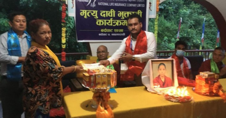 नेशनल लाइफद्धारा मृत्यु बीमा दाबी भुक्तानी