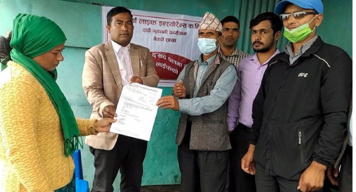 नेशनल लाइफ इन्स्योरेन्सद्धारा म्यादी बीमा दाबी वापत १४ लाख रुपैयाँ मृतकको परिवारलाई हस्तान्तरण