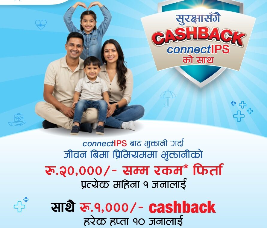 कनेक्टआईपीएसबाट इन्स्योरेन्स प्रिमियम तिर्दा क्यासब्याक अफर