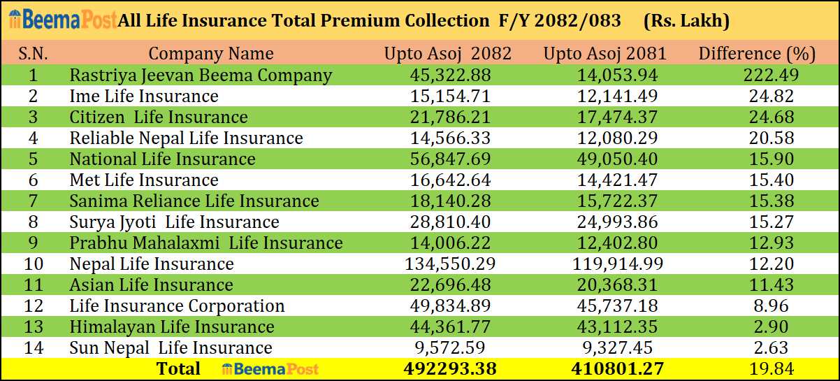 जीवन बीमकको व्यवसाय २०%ले बढ्यो, आइएमई–सिटिजन र रिलायबलको उच्च ग्रोथ