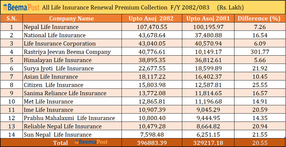 जीवन बीमकको नविकरण बीमा शुल्क ३९ अर्ब ६८ करोड: राष्ट्रिय जीवन बीमा र सिटिजन आक्रामक