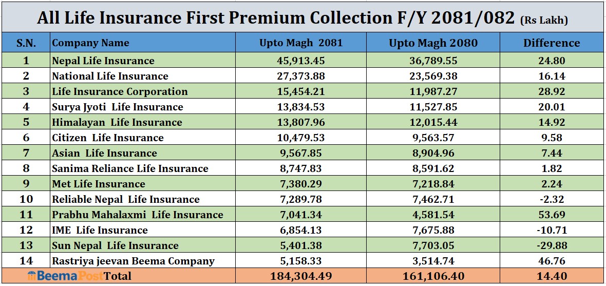 जीवन बीमा कम्पनीको नयाँ व्यवसाय साढे १८ अर्ब नजिकः नेपाल र नेशनल अगाडि, ग्रोथमा प्रभु महालक्ष्मी