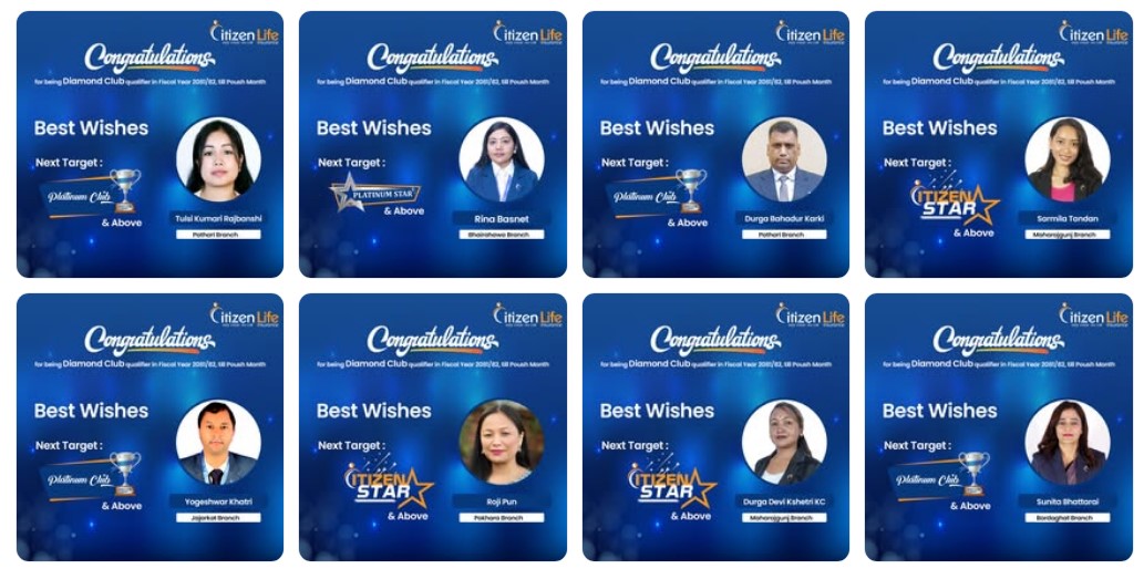 सिटिजन लाइफ इन्स्योरेन्सका उत्कृष्ट १३ जना अभिकर्ता ‘डाइमण्ड क्लव’मा छनौट