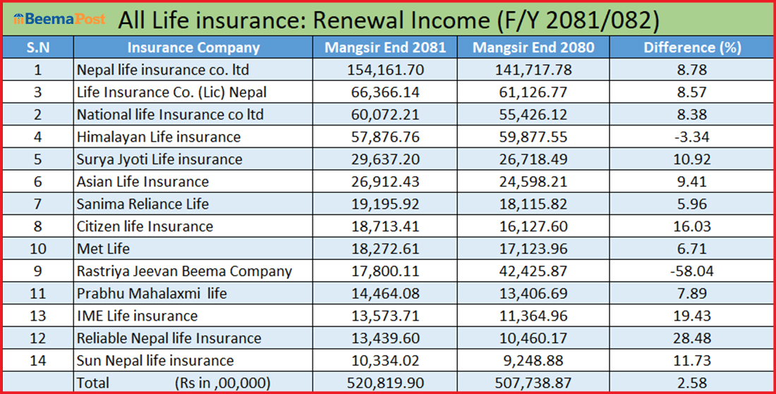 जीवन बीमा कम्पनीको नविकरण बीमाशुल्क ५२ अर्ब, रिलायबल र आइएमईको लोभलाग्दो ग्रोथ