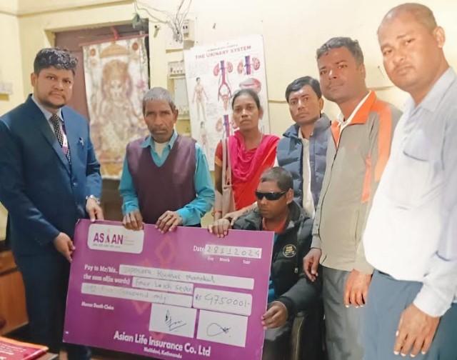 एशियन लाइफ विराटनगर शाखाद्वारा ४ लाख ७५ हजार रुपैयाँ घातक रोग दाबी भुक्तानी