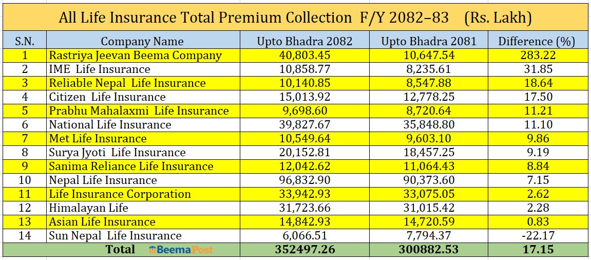 दुई महिनामा जीवन बीमा कम्पनीको बीमा शुल्क आर्जन ३५ अर्ब २४ करोड, अग्रस्थानमा नेपाल लाइफ