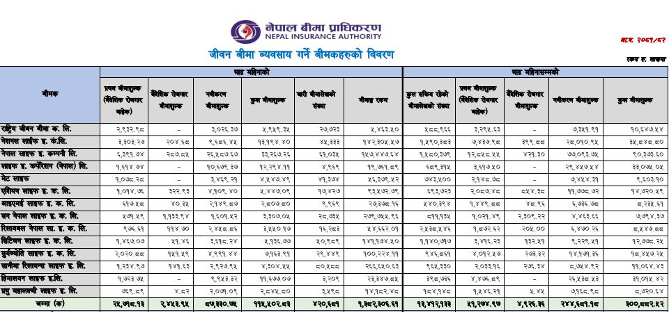 दुई महिनामा जीवन बीमा कम्पनीहरुको व्यवसाय ३० अर्ब माथि, कुनको अवस्था कस्तो ?