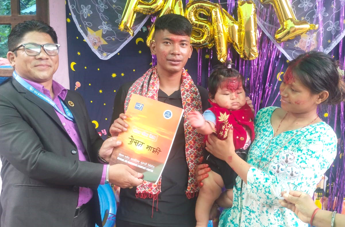 छोरालाई अन्नप्रासन्नको अवसरमा नेशनल लाइफको बाल अमृत जीवन बीमा पोलिसी उपहार