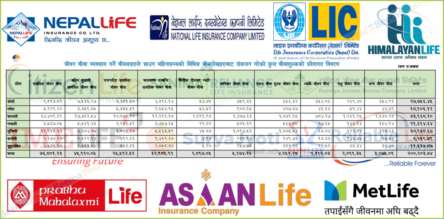सावधिक जीवन बीमा पोलिसीबाट साउनमै साढे सात अर्बको व्यवसाय, कुन पोलिसीबाट कति बीमा शुल्क आर्जन ?