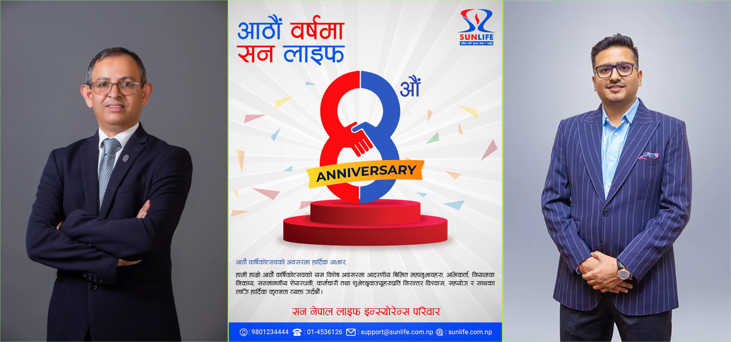 सन नेपाल लाइफ इन्स्योरेन्सको आठौं वार्षिकोत्सव सम्पन्न, उत्कृष्ट बीमा सेवा र प्रतिफल दिने प्रतिवद्धता