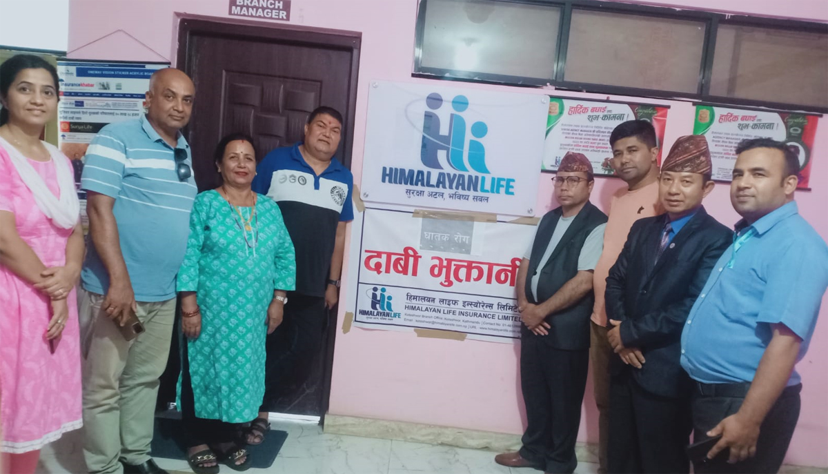 हिमालयन लाइफ कोटेश्वर शाखाद्वारा घातक रोग बापतको २० लाख रुपैयाँ दाबी भुक्तानी