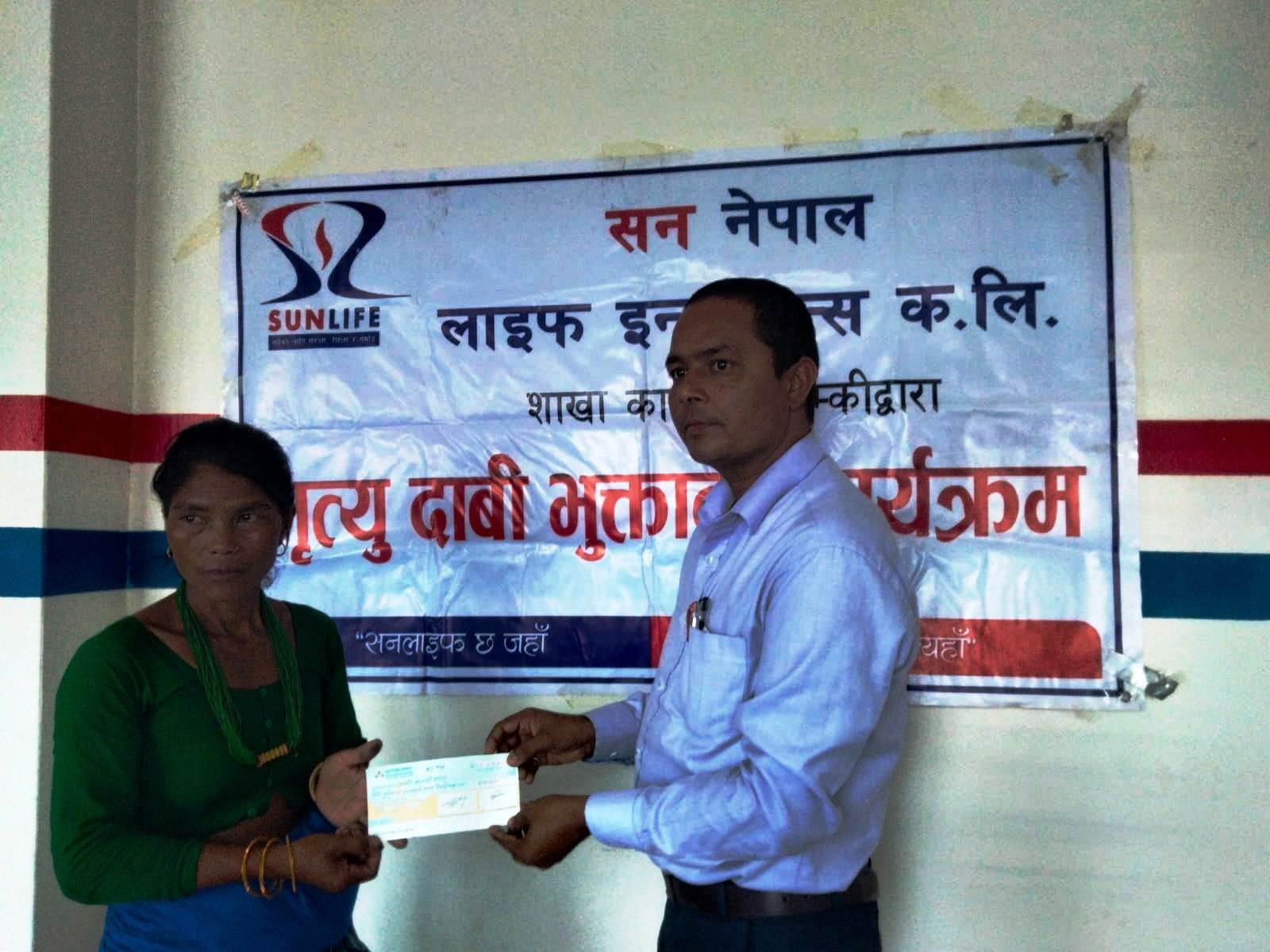 सन नेपाल लाइफ लम्की शाखाद्वारा २ लाख ९६ हजार रुपैयाँ दाबी भुक्तानी