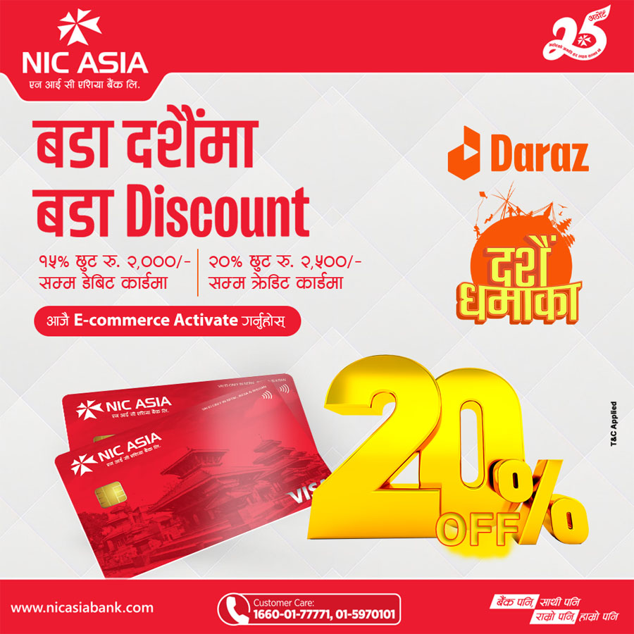 एनआइसी एशिया बैंकका ग्राहकले दराजमार्फत सपिङ्ग गर्दा २५ सयसम्म छुट पाउने