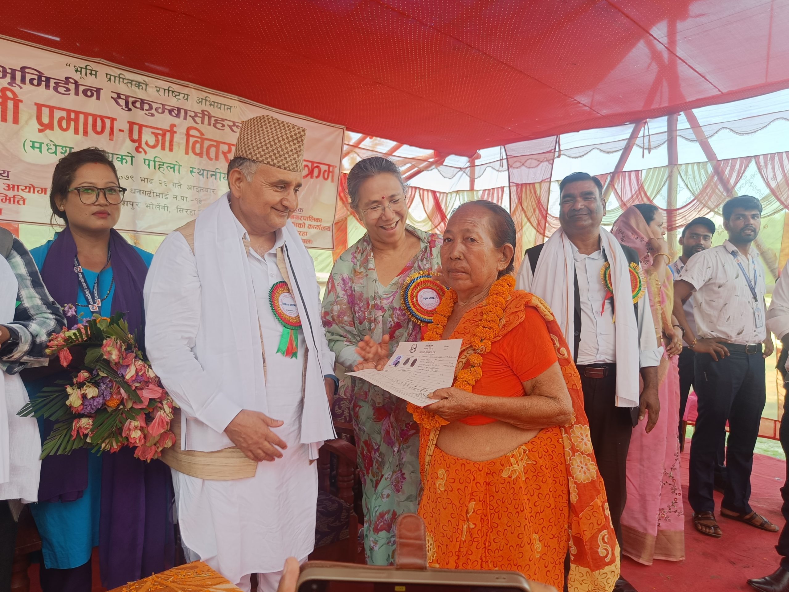 सिरहाको धनगढीमाई नगरपालिकामा ११० भूमिहीन सुकुम्बासीलाई लालपूर्जा वितरण
