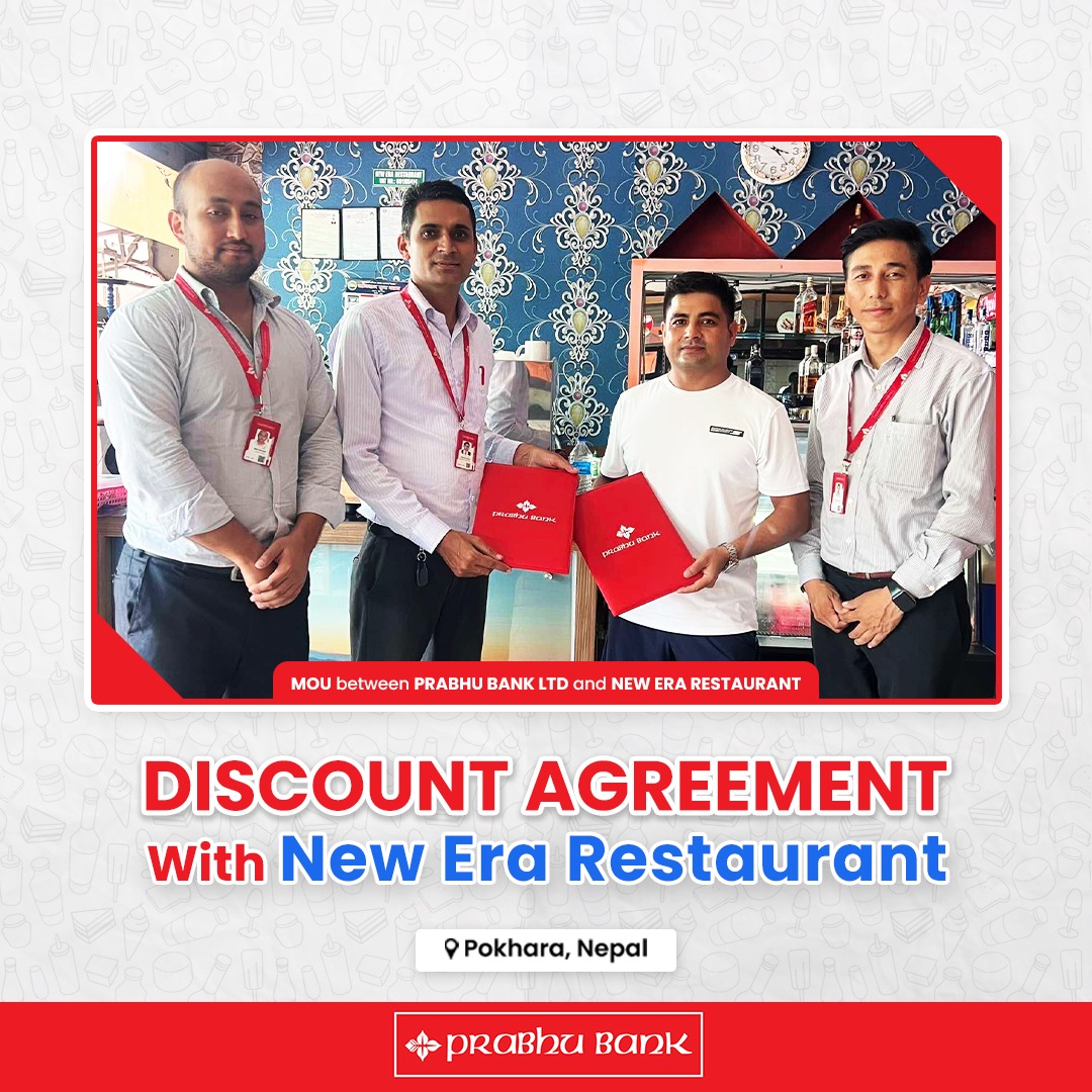 प्रभु बैंक लिमिटेड र न्यू ऐरा रेस्टुरेन्टबीच आकर्षक छुट गर्ने सम्झौता