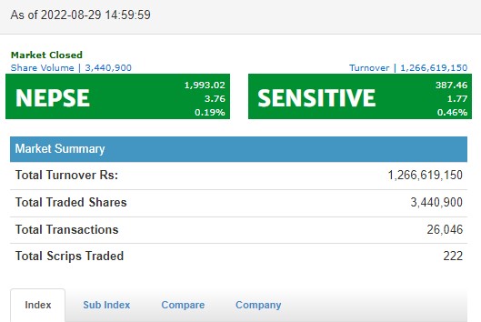 नेप्से झिनो अंकले बढ्दा नौ उपसूचकमा छायो हरियाली, कारोबारमा देखिएन उत्साह