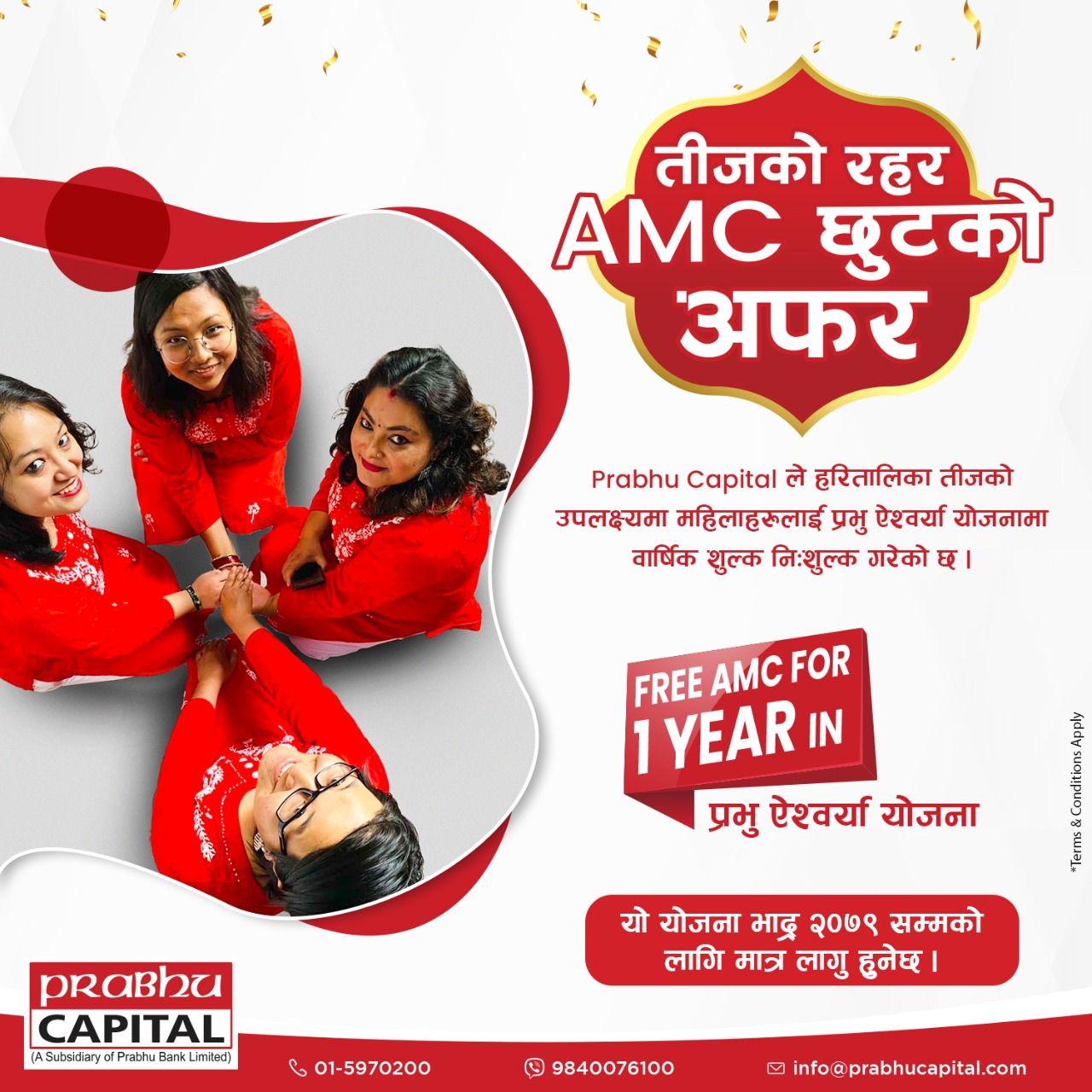 काठमाडौं । प्रभु क्यापिटलले लगानी व्यवस्थापन सेवा अन्र्तगतको प्रोडक्टहरु मध्ये “प्रभु ऐश्वर्या योजना” मा पिएमएस सेवालिदाएक बर्षका लागि वार्षिक सेवा शुल्कन लाग्ने अफर ल्याएको छ । “यो तीजमाप्रभु क्यापिटलको उपहार, एएमसि मा छूटको बहार”भन्ने नारासाथ शुरु हुने यो अफर...