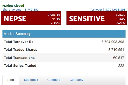 मौद्रिक नीतिपछि उकालो लागेको शेयरबजारमा एकाएक भारी गिरावट, कारोबार सन्तोषजनक