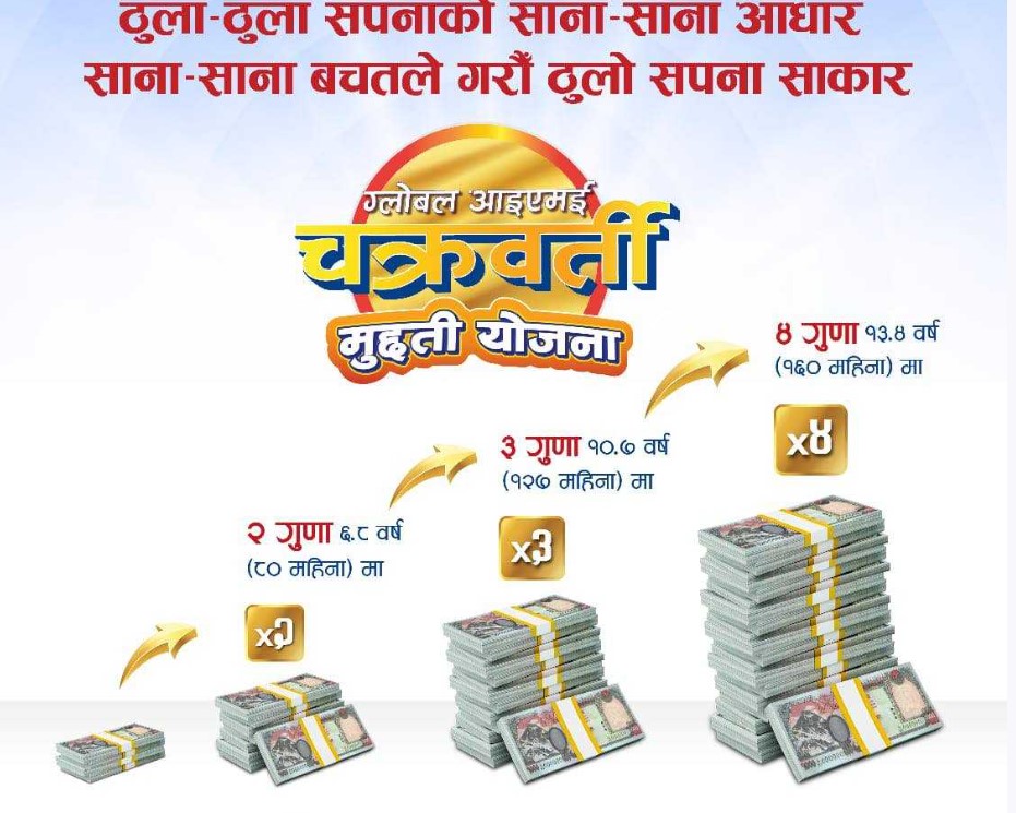 मुद्दती निक्षेपलाई दोब्बर, तेब्बर, चौबर बनाउने “ग्लोबल आईएमई चक्रवर्ती मुद्दती योजना” सार्वजनिक
