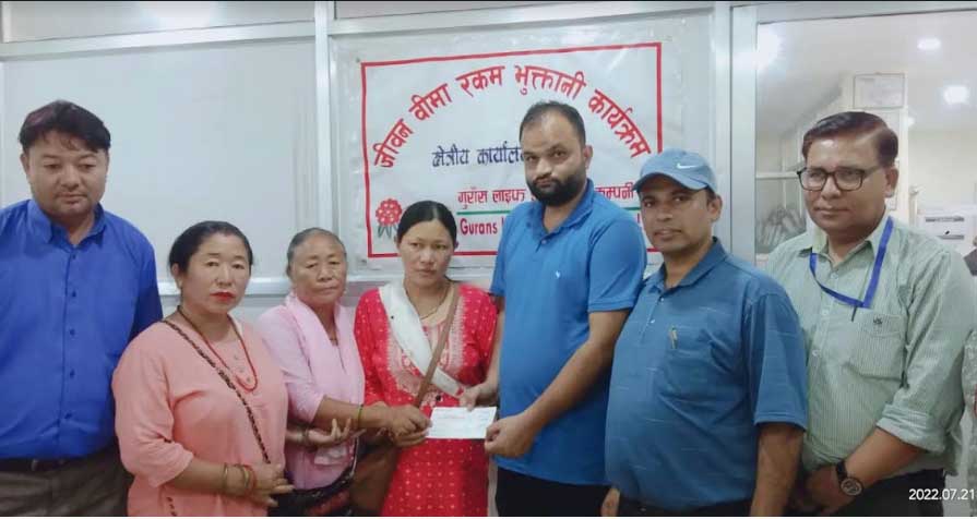 गुराँस लाइफ इन्स्योरेन्सले दियो बीमितको परिवारलाई २१ लाख रुपैयाँ