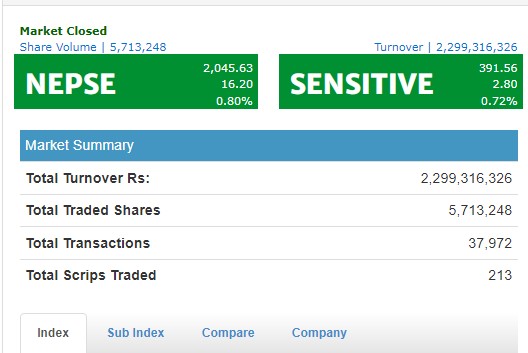 नेप्से दोहोरो अंकले बढ्दा २ अर्बमाथिको कारोबार, लघुवित्त र बीमा सूचक चम्कियो