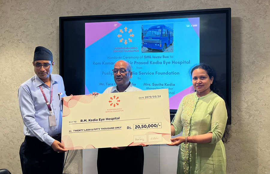 पुष्पतारा केडिया फाउण्डेशनद्धारा रामकुमार महावीर प्रसाद केडिया आँखा अस्पताललाई सुजुकी बस हस्तान्तरण