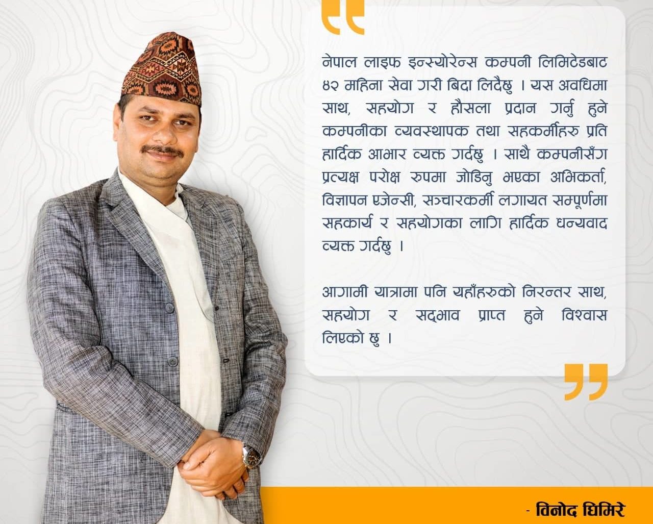 बिनोद घिमिरेले छोडे नेपाल लाइफ
