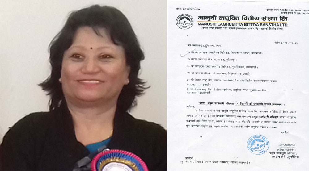 मानुषी लघुवित्तको सिइओमा शोभा बज्रचार्य पुनः नियुक्त