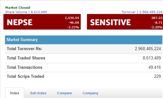 ४६ अंकले घट्यो नेप्से परिसूचक, १३ उपसूचक राताम्य हुँदा करिब ३ अर्बको कारोबार