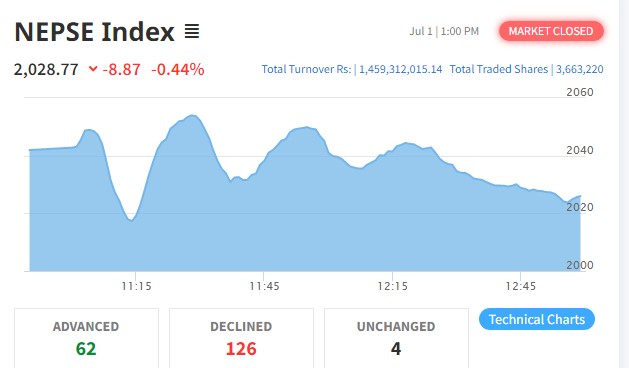 नेप्से झिनो अंकले घट्दा साढे १ अर्बको कारोबार