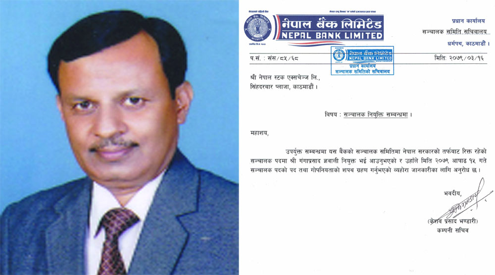 नेपाल बैंकको संचालकमा गंगाप्रसाद ज्ञवाली नियुक्त