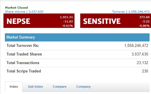 दोहोरो अंकले घट्यो शेयरबजार, जीवन बीमा समूह चम्किदा एक अर्बको कारोबार