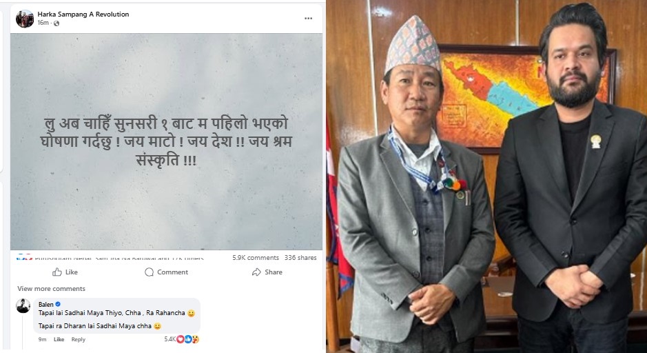 हर्क साम्पाङ विजय भएपछि बालेनको शुभकामना, ‘तपाईलाई सधैँ माया थियो, छ र रहन्छ’