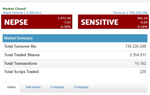 नेप्से झिनो अंकले घट्दा ७३ करोडको मात्रै कारोबार, हाइड्रोपावर र निर्जिबन बीमा समूहको शेयर सर्वाधिक घट्यो