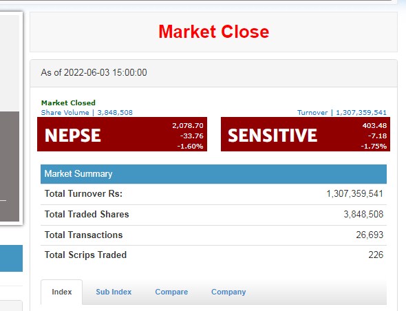 उच्च अंकले घट्यो नेप्से, २०७८ मा झर्यो नेप्से परिसूचक