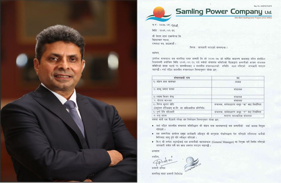 नयाँ अध्यक्षको आगमनसँगै सामलिङ पावर कम्पनीका सिइओ भानुभक्त पोखरेलले दिए राजिनामा