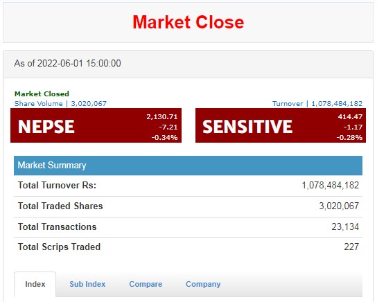 सात अंकले घट्यो नेप्से, वित्त कम्पनी र हाईड्रोबाहेक सबै राताम्मे