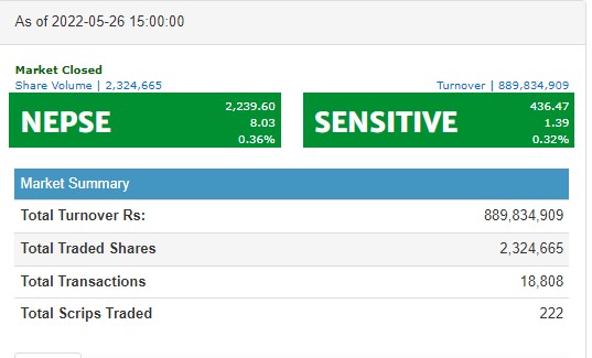 नेप्से झिनो अंकले बढ्दा ८ उपसूचकमा छायो हरियाली, ८८ करोडको मात्रै कारोबार