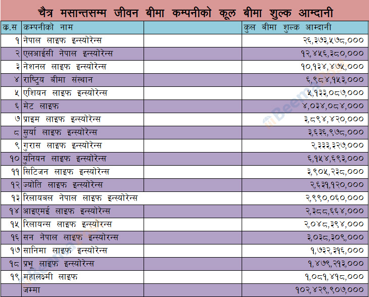 निर्जिवन बीमा कम्पनीहरुको कुल बीमाशुल्क आर्जन साढे २८ अर्ब माथि, कुन कम्पनीले कति गरे ?(तथ्याङ्क सहित)