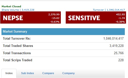 दोहोरो अंकले घट्यो नेप्से, ११ सूचक राताम्य हुँदा कारोबार एक अर्बमा खुम्चियो