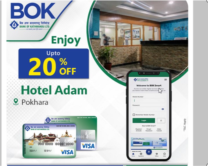 बैंक अफ काठमाण्डूका ग्राहकले होटल हदाममा २० प्रतिशत छुट पाउने
