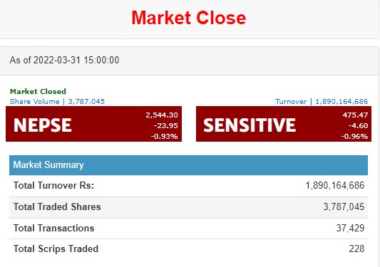 २३ अंकले घट्यो नेप्से, जीवन बीमा समूहको सर्वाधिक घट्दा एक अर्बमा खुम्चियो कारोबार