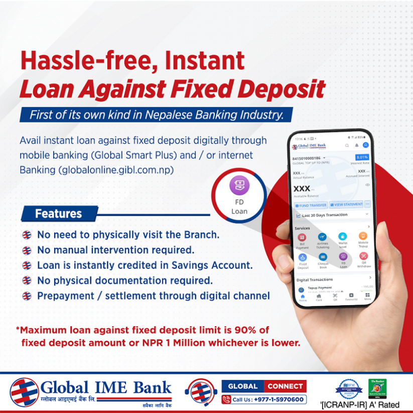 मुद्दती निक्षेपमा झन्झटरहित कर्जा उपलब्ध गराउँदै ग्लोबल आइएमई बैंक