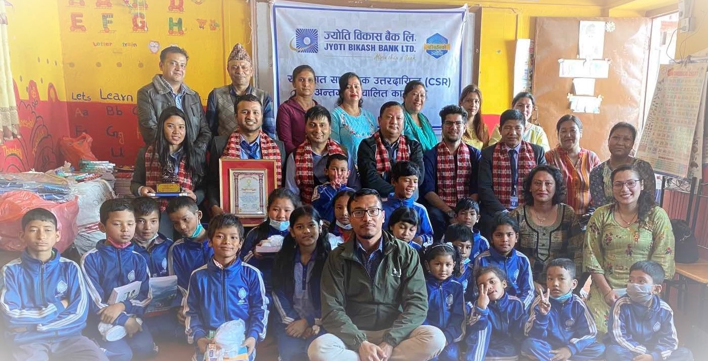 ज्योति विकास बैंकद्धारा विद्यालयलाई शैक्षिक सामाग्री हस्तान्तरण