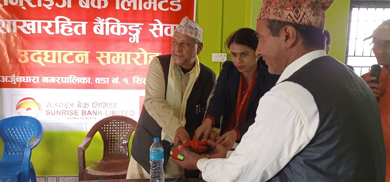 सनराइज बैंकको शाखा रहित बैंकिङ सेवा झापाको अर्जुनधारामा